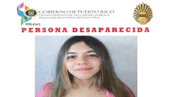 Agentes de la División de Personas Desaparecidas del CIC de Bayamón del Negociado de la Policía de Puerto Rico informaron la desaparición de una menor de 13 años.